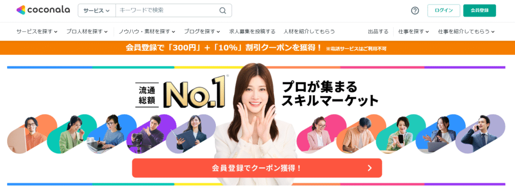 出品できるジャンルが幅広く、初心者にもオススメなプラットフォームが「ココナラ」です。スキルや資格がある方向けのジャンルに特化したプラットフォームもあるので、ぜひ自分にあったプラットフォームを探してみてください。