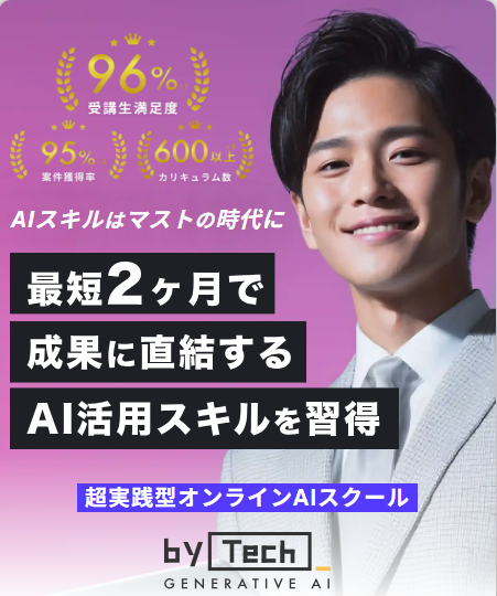 しかし、独学で最新の生成AIツールや効果的な活用法を習得するのは難しく、効率よく実務レベルのスキルを身につけるには、体系的に学べるスクールの活用が近道です。