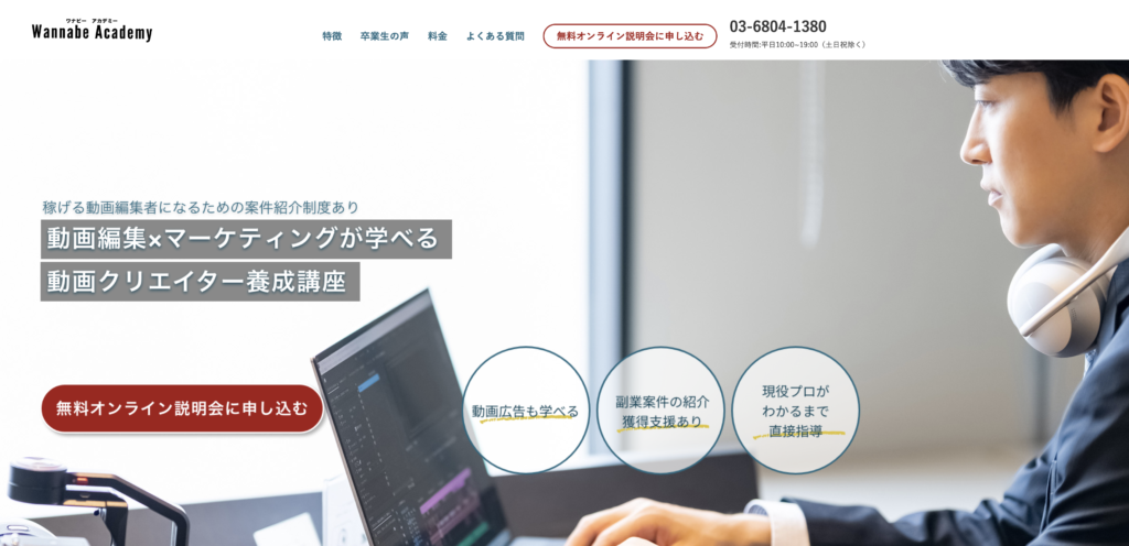 WANNABE Academy(ワナビーアカデミー)は、実務経験を通じてWebマーケティングを学べる実践型スクールです。広告運用・SNSマーケティング・SEOなど、幅広いスキルを学べるだけでなく、実際のクライアント案件に携わることで「実績づくり」と「アウトプット重視の学習」ができる点が大きな魅力です。
