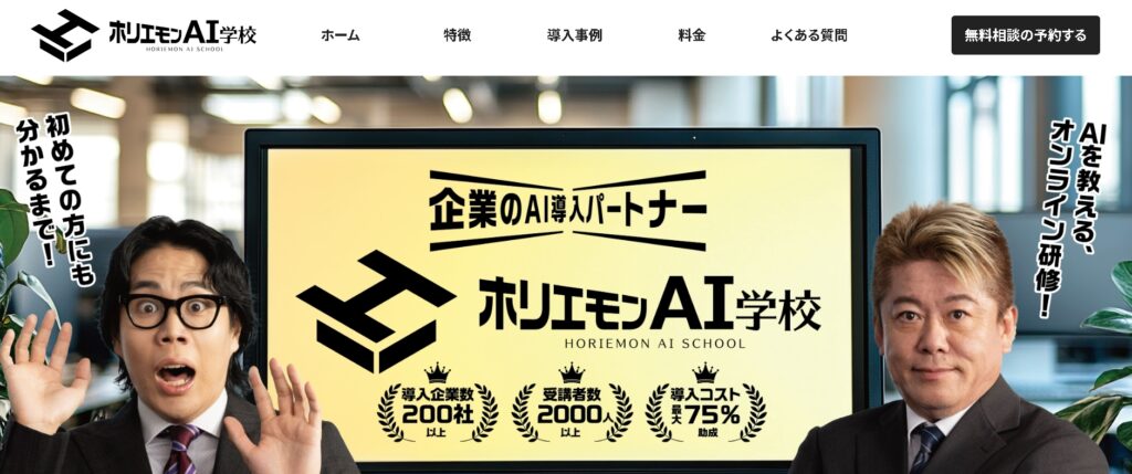 「ホリエモンAI学校」は、AIやIT初心者向けに実務で役立つ知識を提供するオンラインスクールです。
