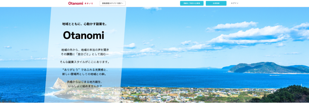 Otanomi(オタノミ)は、地域の中小企業や自治体の「課題」をオープンにし、副業・兼業人材とマッチングするプラットフォーム型のクラウドソーシングサービスです。在宅・リモートで可能な地域貢献案件が多く、マーケティング支援、ブランディング、採用計画立案などのプロジェクトが掲載されています。