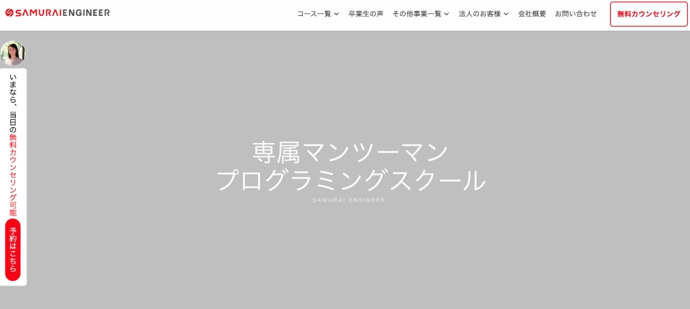 | SAMURAI ENGINEER(サムライ エンジニア) | オーダーメイドのカリキュラムで学べる。専属インストラクターが個別に伴走。 | ○ | ○ | |