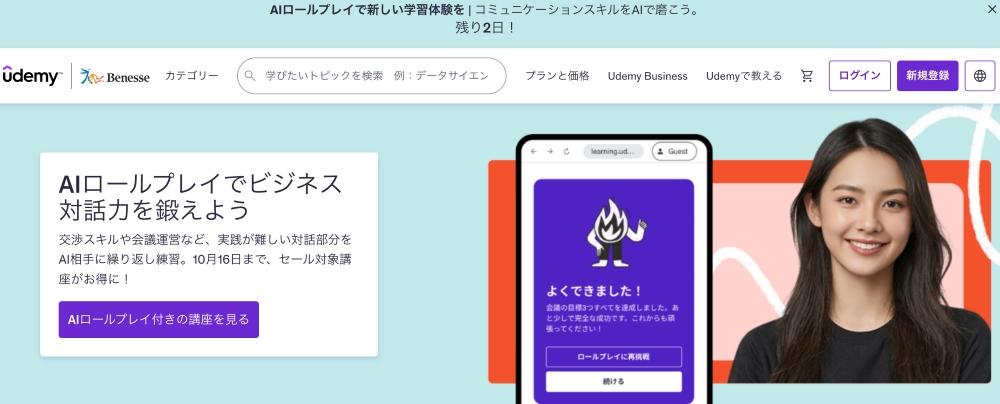 Udemyは、買い切り型の動画講座で、データ分析・Python・AIなどを自由なペースで学べるオンライン学習プラットフォームです。