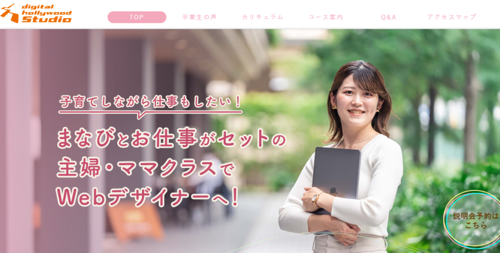 Web・IT人材の育成で実績を持つデジタルハリウッドでは、主婦やママを対象とした専用クラスを開講しています。
