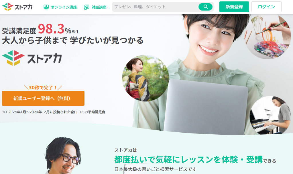 ストアカは日本最大級の習いごと検索サービスです。学べるスキルは多種多様で、IT・リスキリングだけでなく、ビジネススキルや語学学習、フィットネス、ハンドメイド作成など豊富なジャンルから気になるものを学べます。