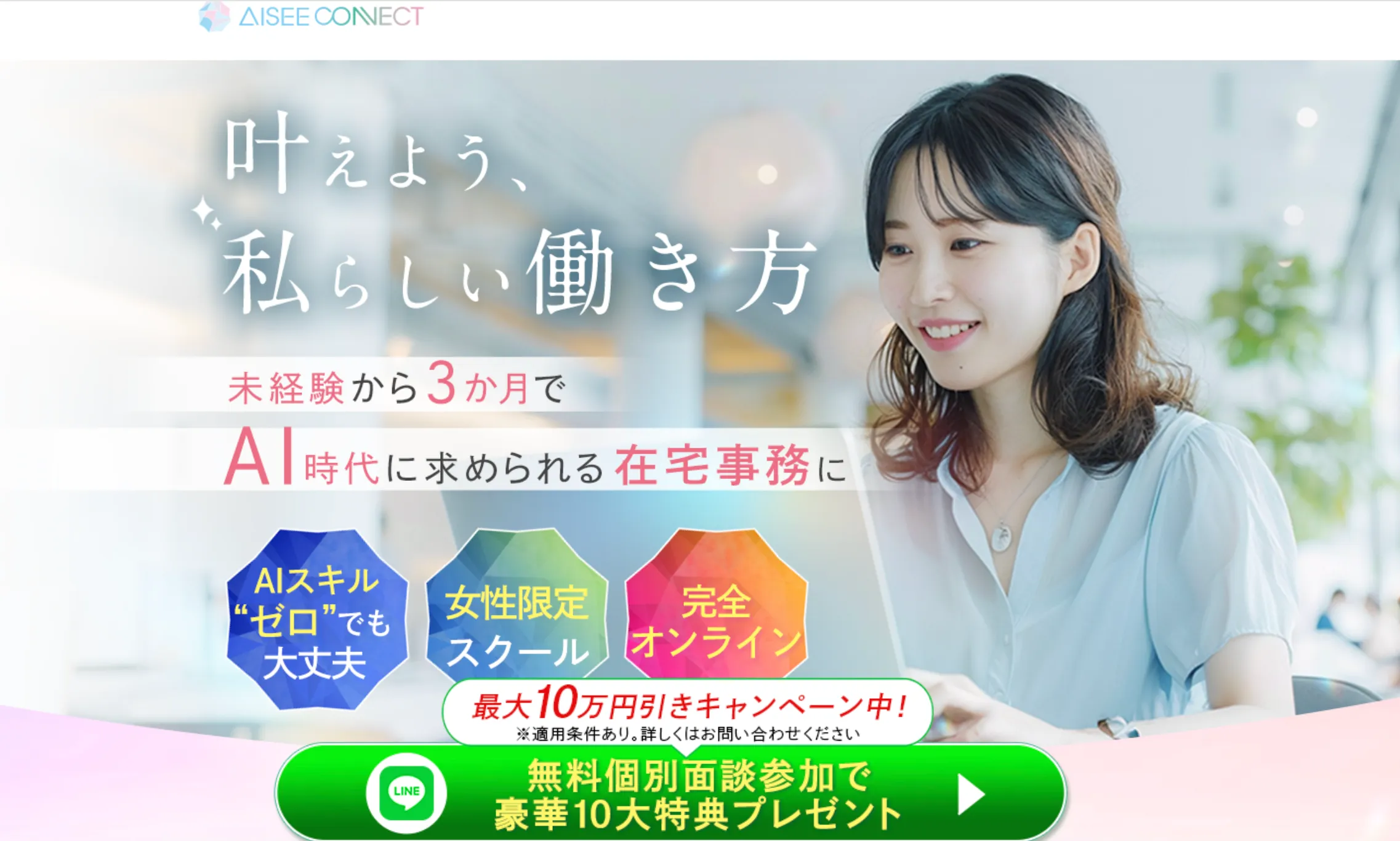 「AISEE(アイシー)」は、20歳以上の女性を対象とした女性専用のAIスクールです。