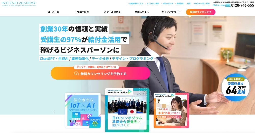 「INTERNET ACADEMY」は、WebやITスキルを基礎からしっかり学べるスクールです。