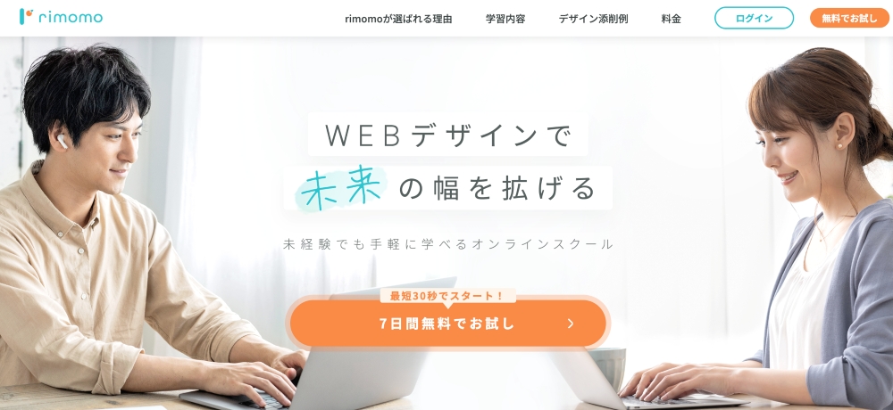 「rimomo」は、月額9,800円から学べる業界最安レベルのオンラインWebデザインスクールです。