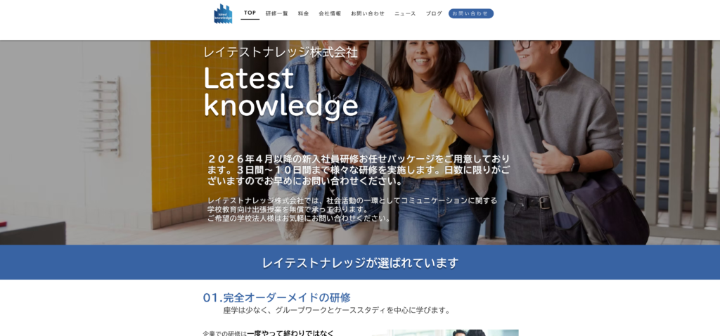 レイテストナレッジ株式会社は、日本でビジネス展開する企業向けに完全オーダーメイドのビジネス研修を提供し、打ち合わせ段階から企業のビジネス背景・ニーズ・課題を深くヒアリングして研修コンテンツを最適化する点が特徴です。 高品質かつ低価格を実現するため、各講師が豊富な実績と経験を活かし、打ち合わせから実施・フォローアップまで一貫して対応します。